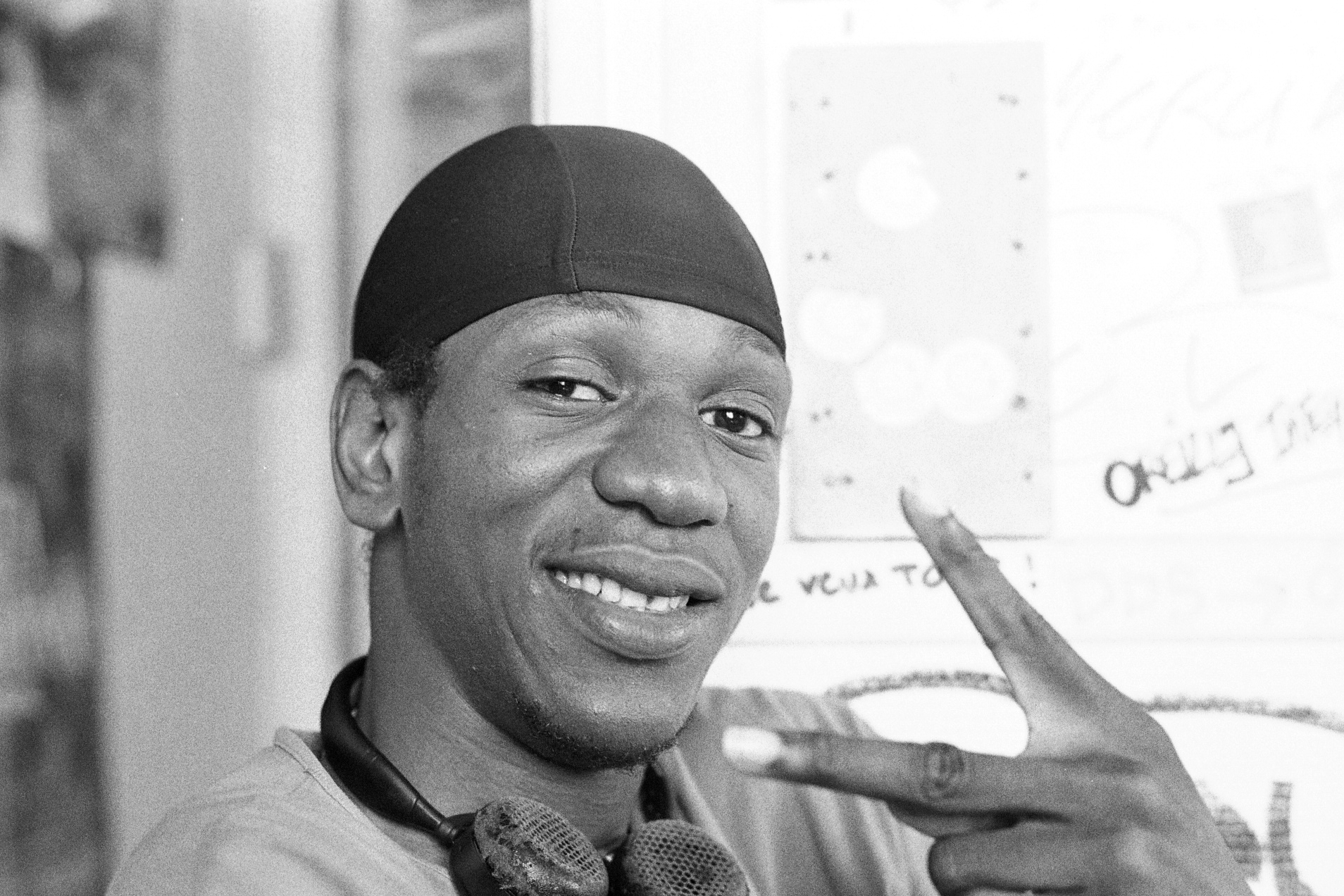 Après quelques échanges, place aux impros derrière le micro pour les jeunes. Les instrumentaux de Dr Dre, Cypress Hill se mèlent aux compos originales de certains ou à certains glanés sur Internet.