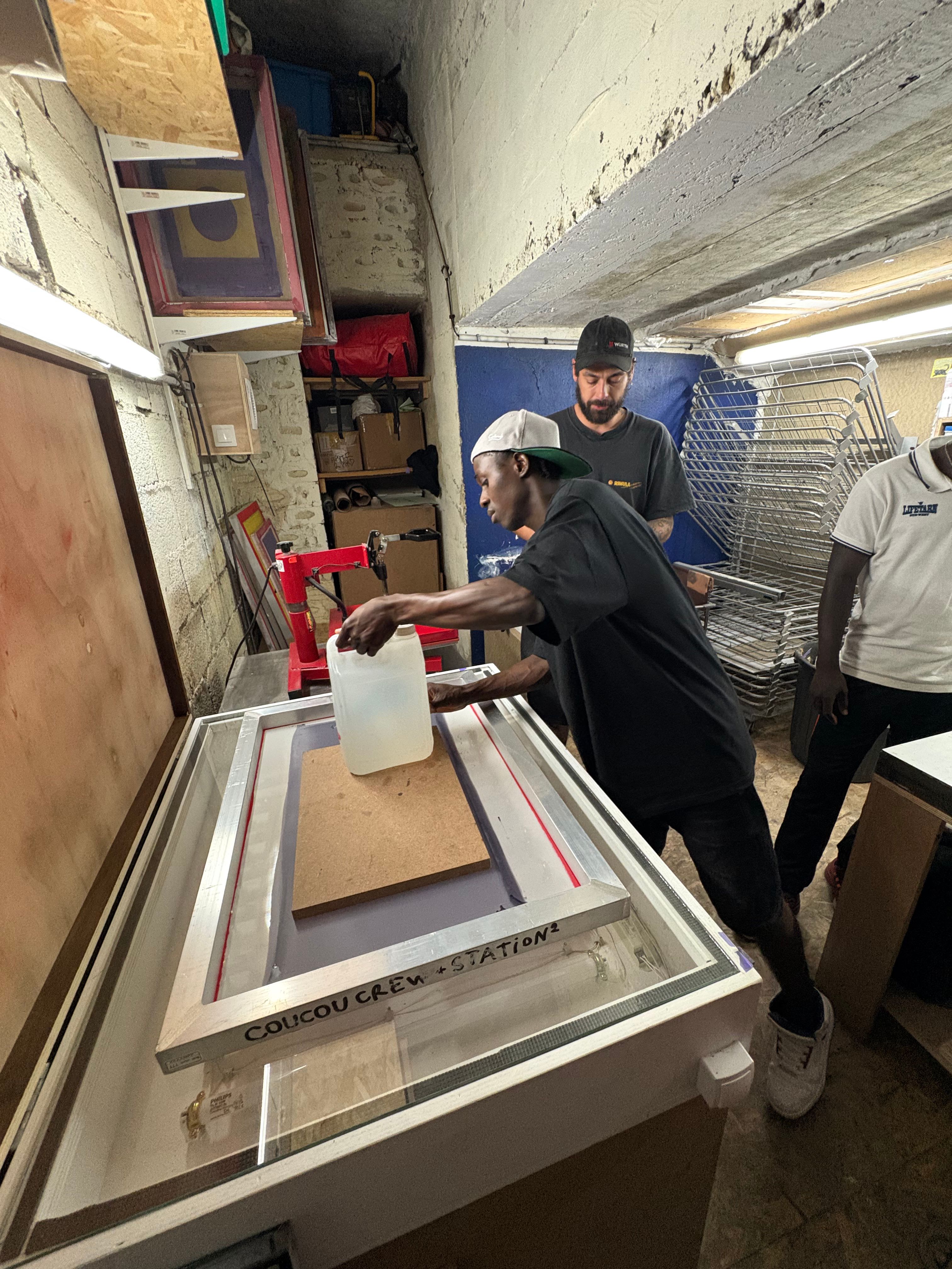 En plus d'avoir pu sérigraphier l'affiche sur papier, ils ont pris les devants en réalisant eux meme de la sérigraphie sur t-shirt à partir des éléments visuel de l'affiche