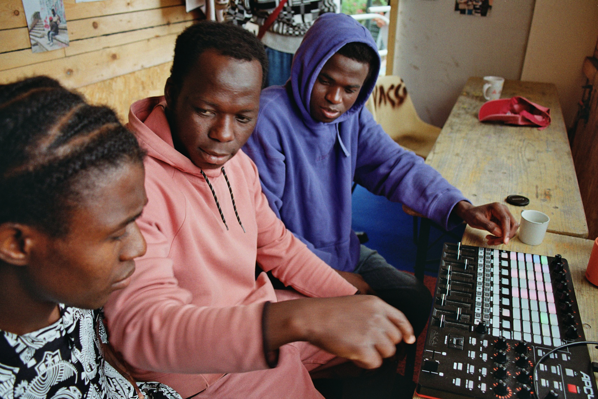Les jeunes se sont plongé dans la création d'un beat a partir des sons enregistré via le logiciel de MAO Ableton Live et d'un controleur / sampler MIDI. L'occasion d'amener une couleur nouvelle et parfois innatendue aux sons enregistrés. Le rire de Juliette du Coucou, les chants de la case, les improvisations musicales a capella ou encore les percussions des containers ont fusionné avec pour finalité la création d'un morceau original